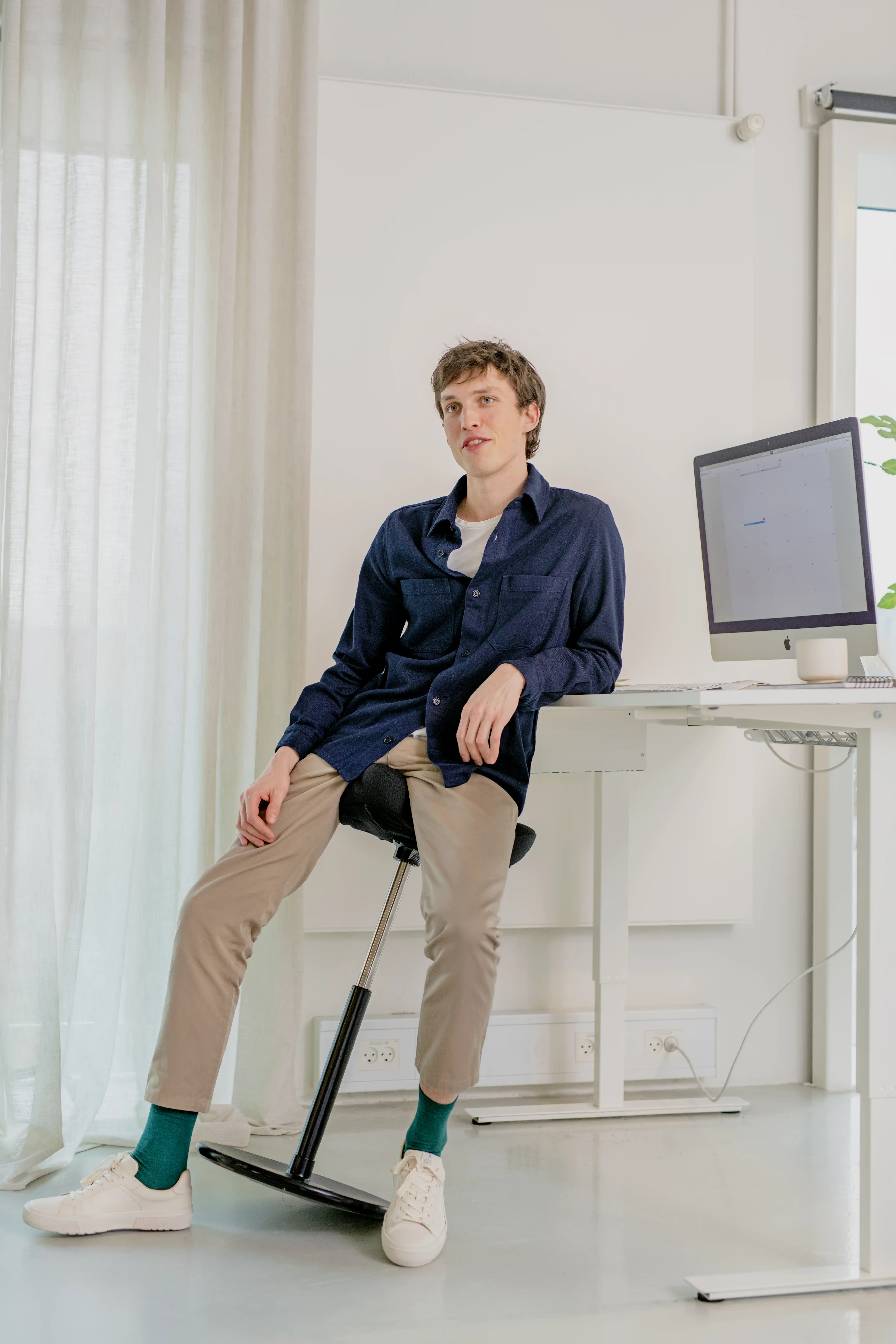 - Sit-stand stool that keeps you upright, mobile, and focused.